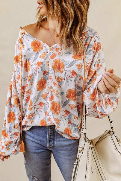 * This floral top has a boho vibe and relaxed fit * It has full sleeves and pretty tassel accents * Made of soft lightweight fabric, so comfortable to wear * We love floral styles so much for a vibrant holiday look