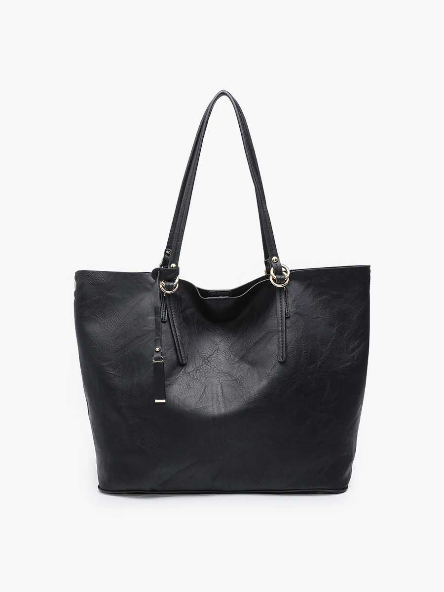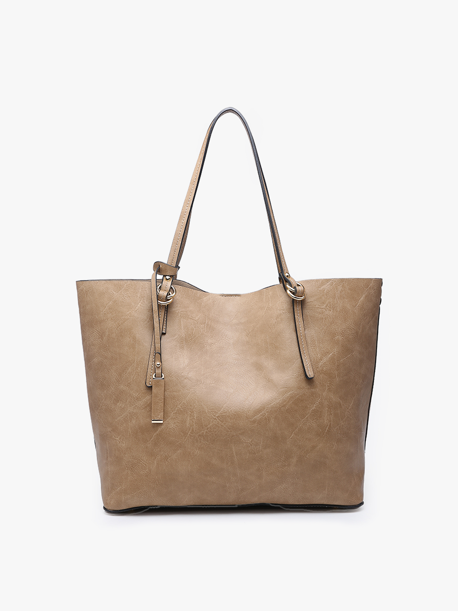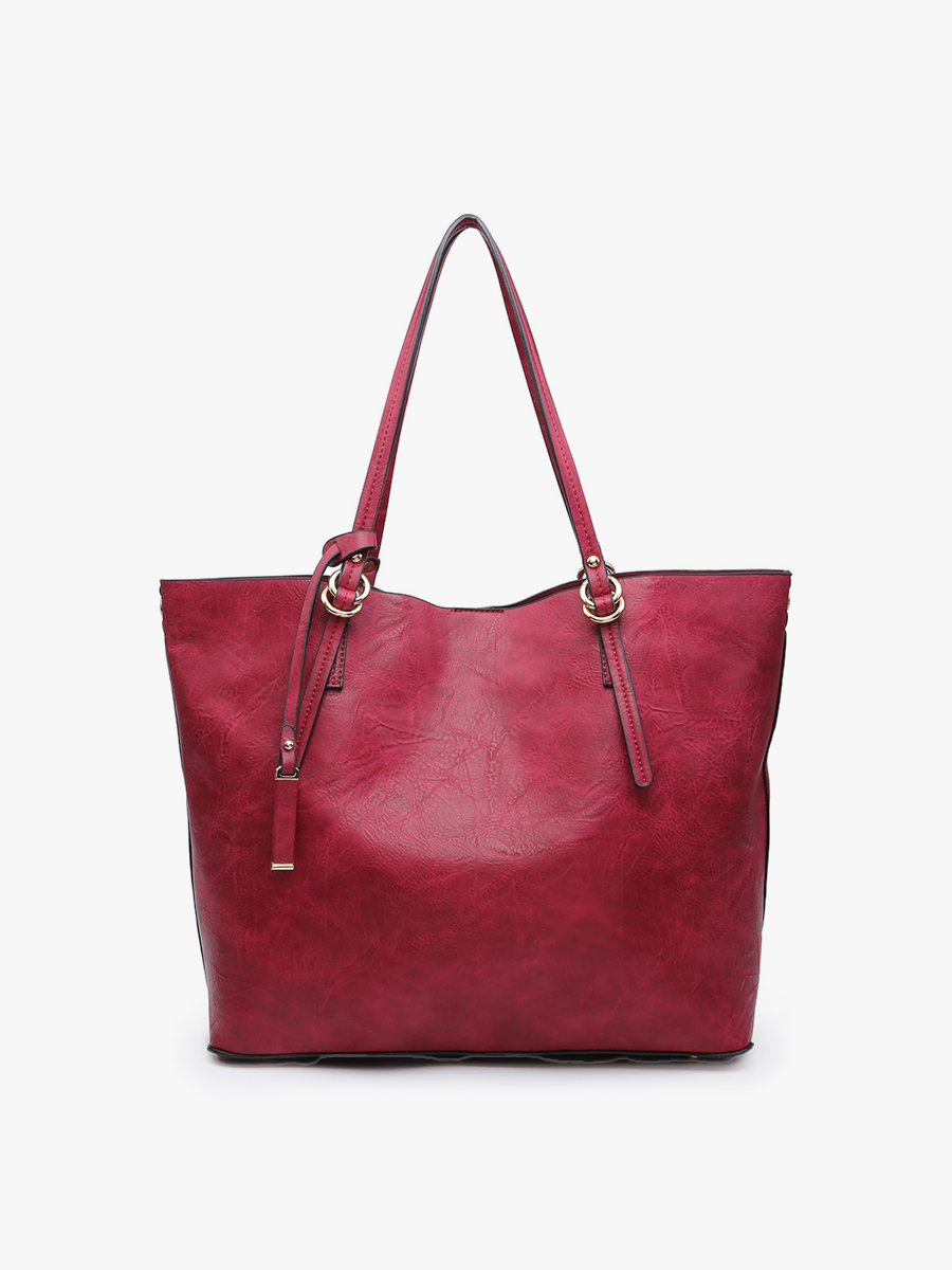Item Details: -Style: M1614 Iris Monogrammable 2-in-1 Tote Bag Features: Monogrammable, 2-in-1 handbag -Inner Bag: Included with 1 zipper pocket and 2 accessory pockets, herringbone lining -Straps: Removable adjustable shoulder strap -Closure: Magnetic snap closure -Hardware: Gold-tone hardware -Material: Vegan leather Dimensions: -Length: 15 inches -Depth: 6.5 inches -Height: 12.5 inches The M1614 Iris Monogrammable 2-in-1 Tote Bag offers versatility and style. It features an inner bag with organizational pockets and a herringbone lining for added sophistication.
