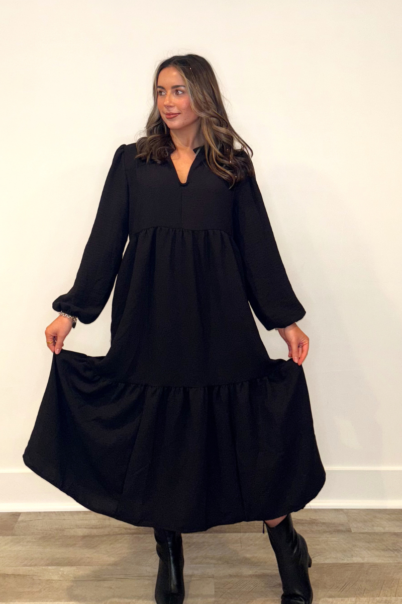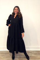 The Megan Dress delivers seasonal elegance with its woven babydoll silhouette and maxi length, striking the perfect balance between comfort and refined femininity. Thoughtfully designed with delicate details and practical pockets, this piece transitions effortlessly through fall and winter wardrobes. The relaxed fit and quality construction make it an ideal choice for those seeking a dress that combines everyday wearability with polished style.