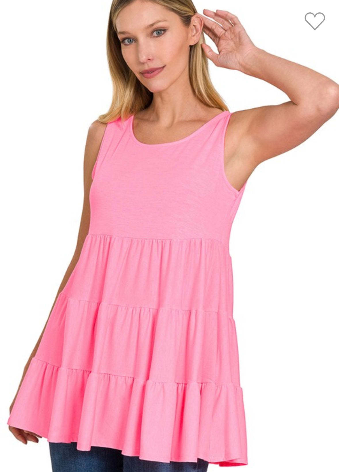 You will be summer ready in this cute ruffled tunic. This tunic is perfect with jeans, shorts, skirts or pants - so many options! Wear it alone or layered.
