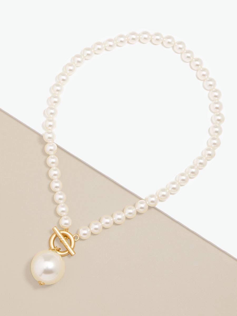 Collar necklace featuring an oversized pearl pendant and finished with an 18K gold-plated toggle closure.
