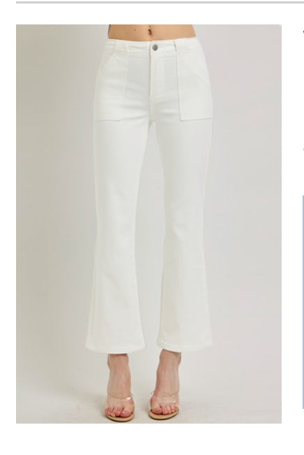 White jeans are so versatile, they can be dressed up or down but are always eye-catching! The patch pockets on these add a unique touch to a classic denim look. The ankle flare also adds a dimension to elevate the look. Grab these now and remember, you CAN wear these after Labor Day!