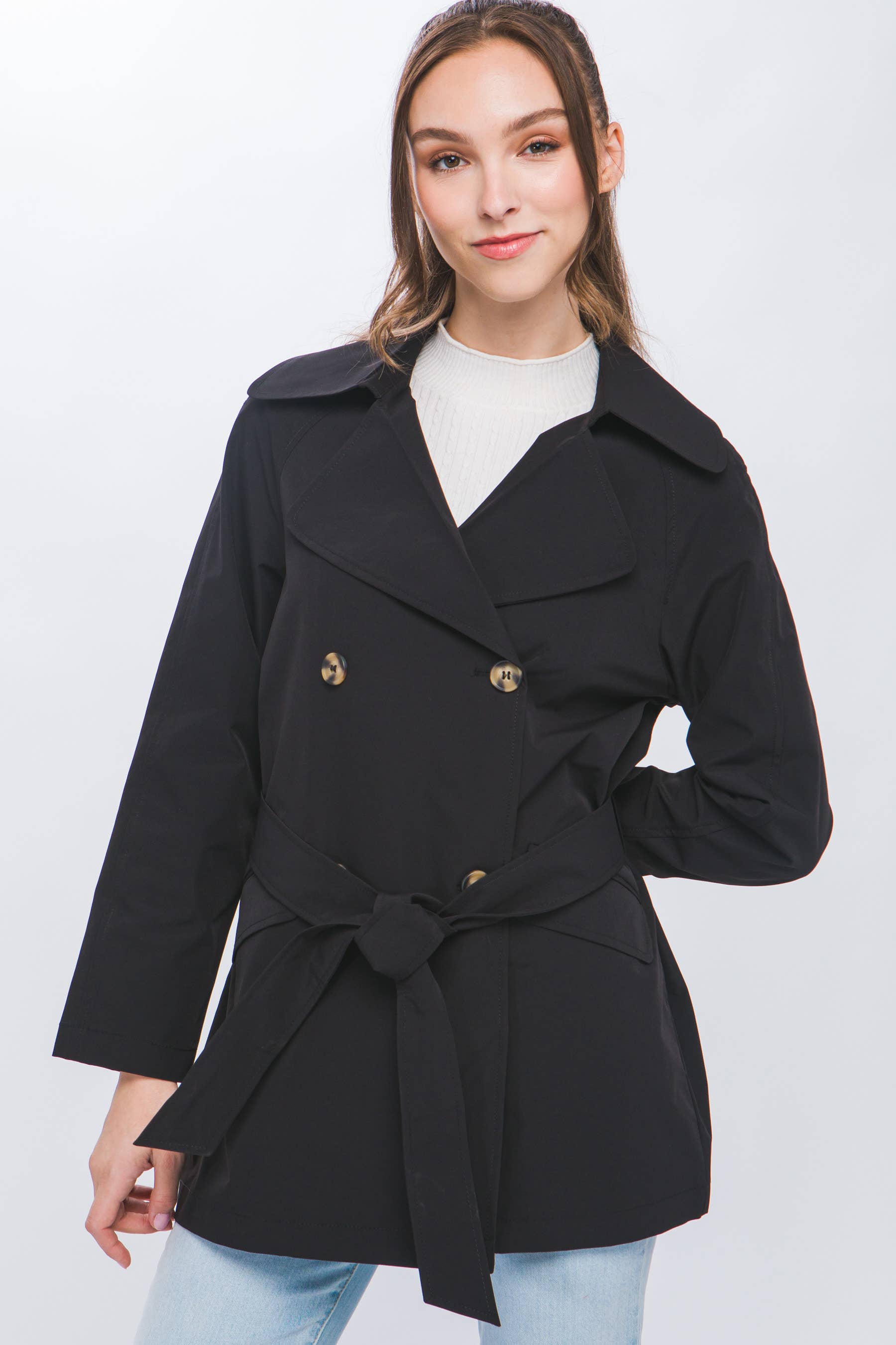 SI-25769 Mid Length Light Weight Trench Coat With Waist Tie * Functional pockets Fabric Content: 100% POLYESTER