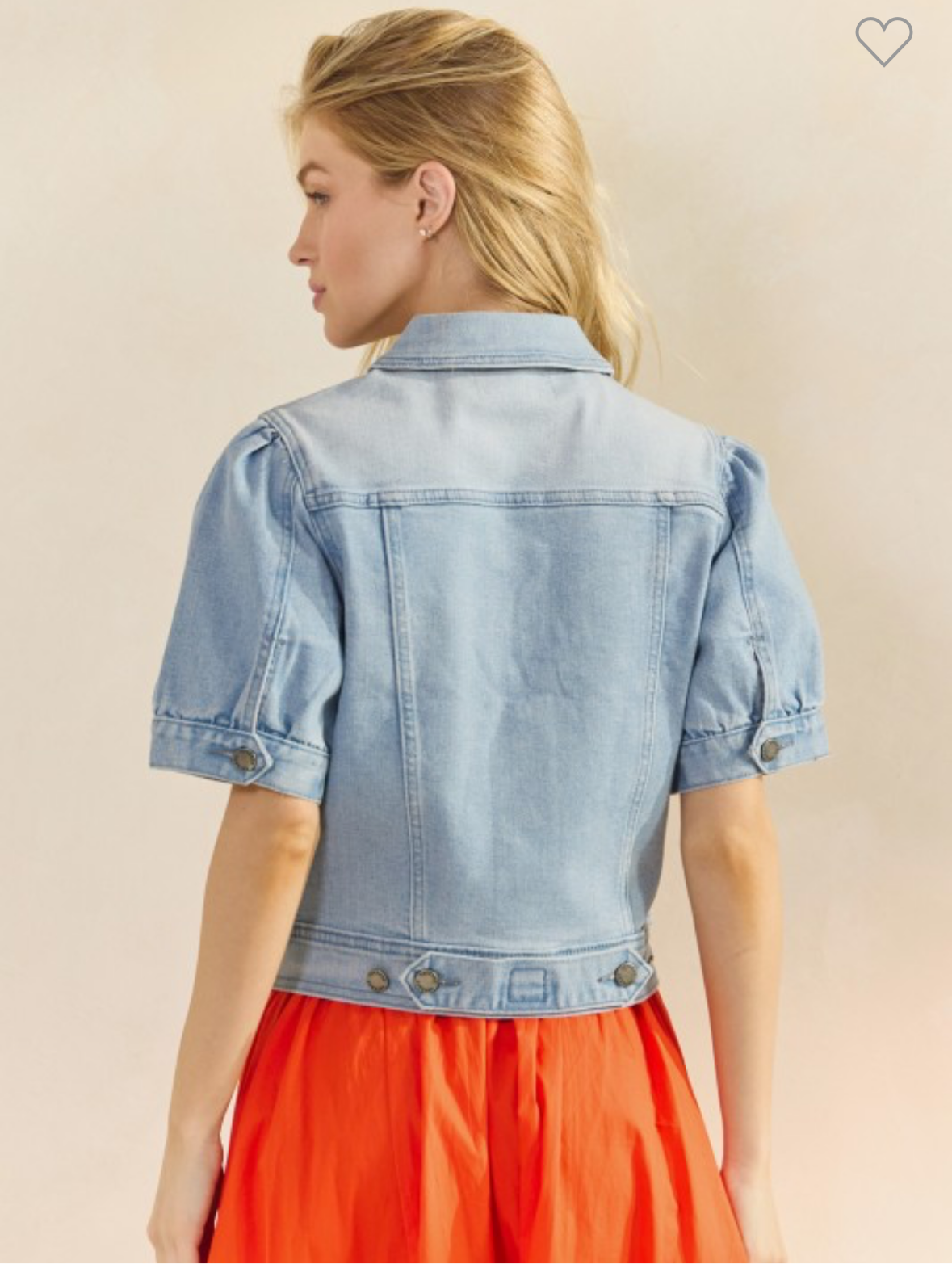 This short-sleeve denim jacket offers versatile styling as both a lightweight outer layer and a standalone top. Crafted from durable denim, it balances casual appeal with structured design, making it ideal for transitional weather and layering. Its cropped cut and short sleeves keep you cool while adding a modern edge to your outfit.