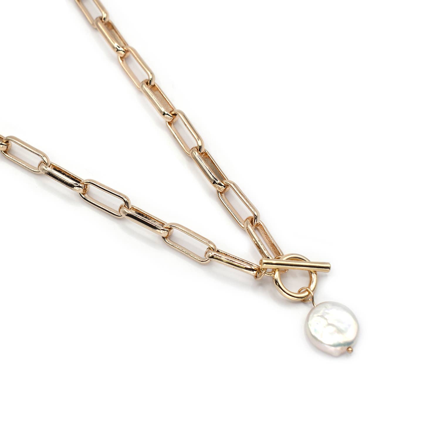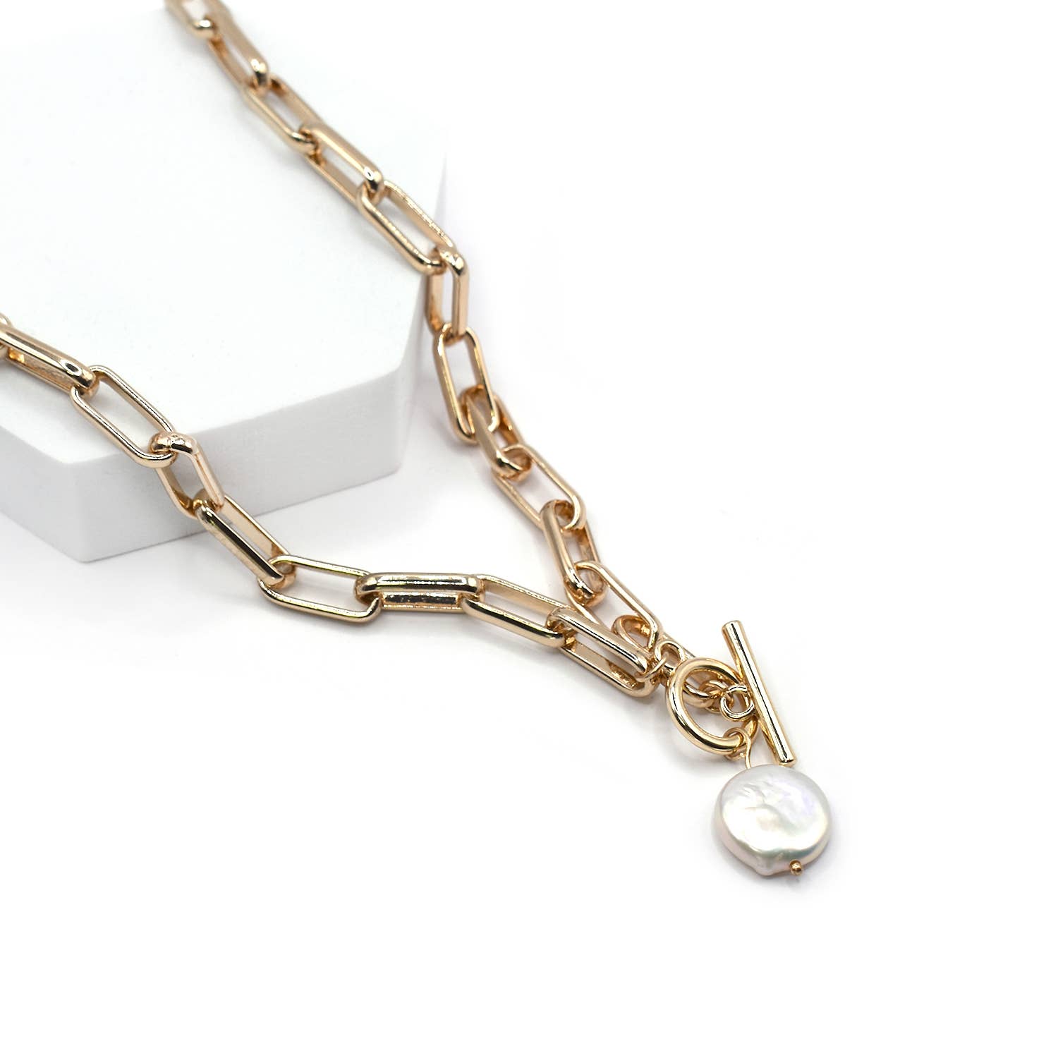 Natural FreshWater Coin Pearl Pendant with T bar Necklace