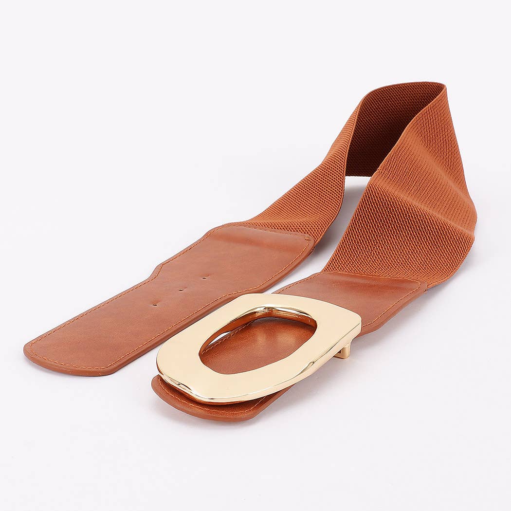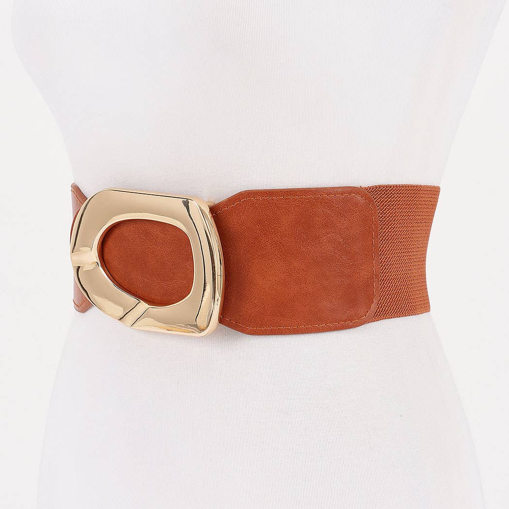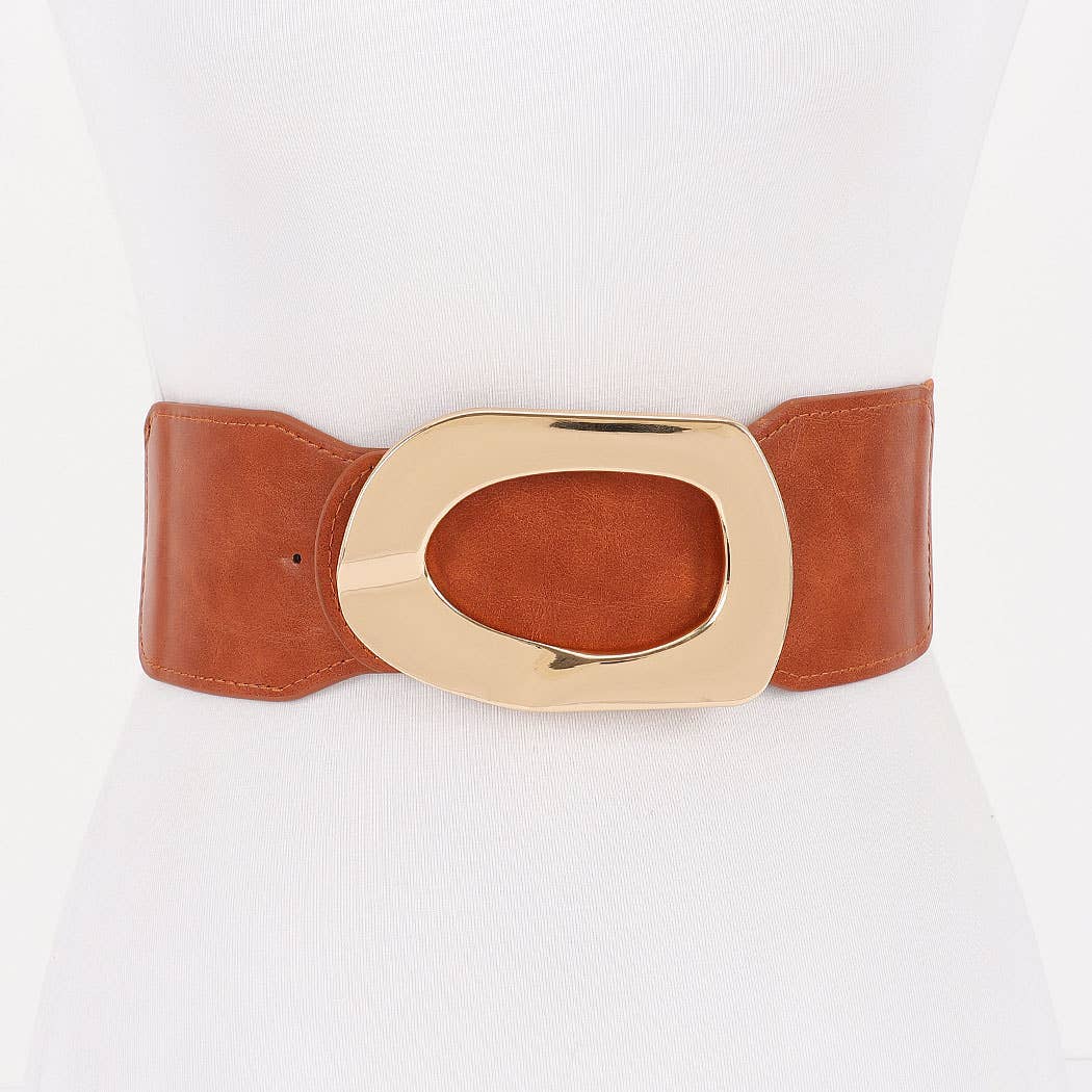 This Statement Buckle Waist Belt from H&D Accessories features a wide leather strap paired with an oversized, eye - catching metal buckle. The unique buckle design gives it a bold, fashion - forward look, making it a standout accessory.