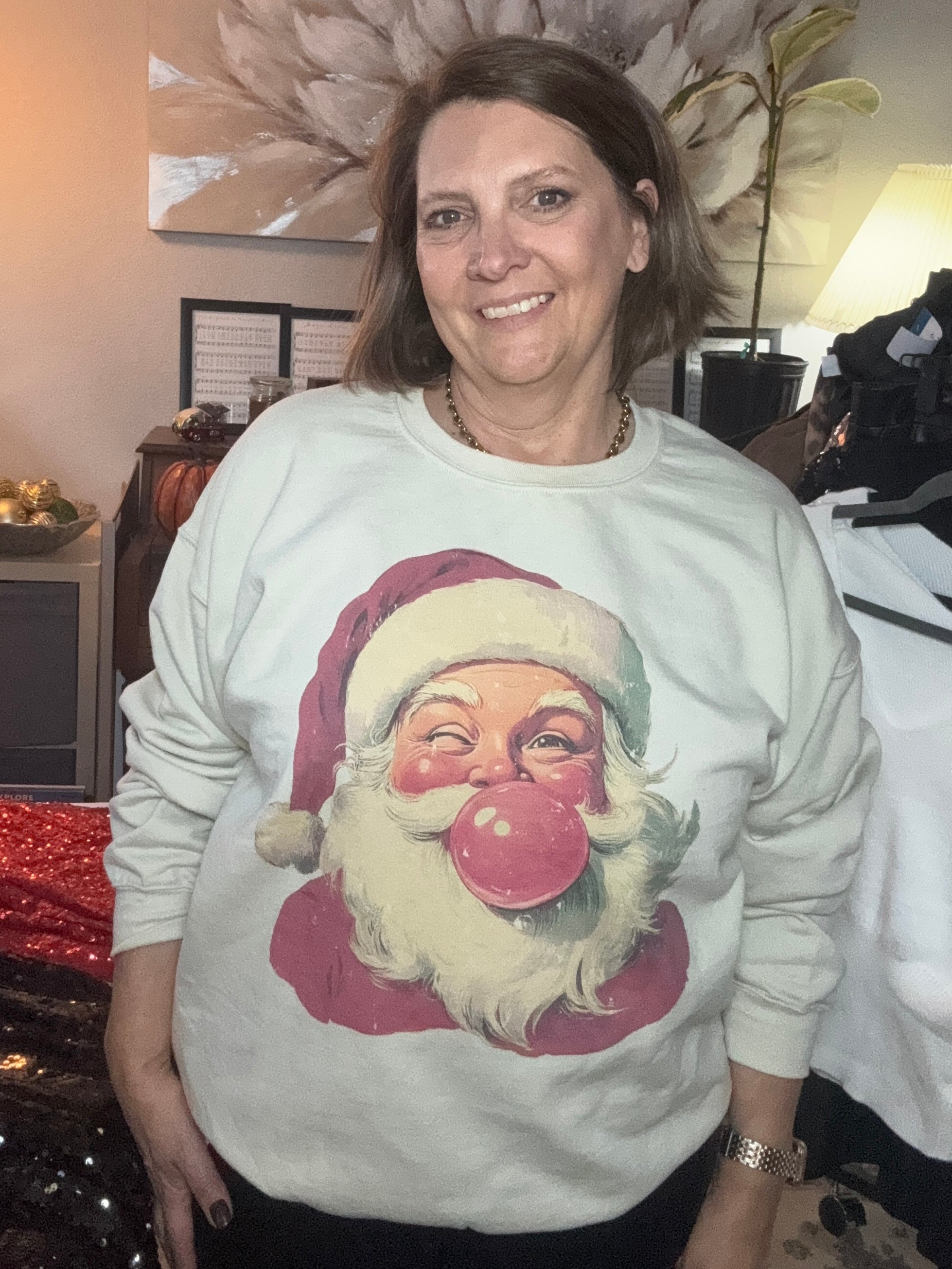 Embrace holiday humor with this Santa Bubble Gum sweatshirt, featuring a playful design of Santa indulging in a classic bubble-blowing moment. Crafted from soft, comfortable fabric, this piece combines festive spirit with lighthearted charm—perfect for casual winter gatherings, holiday parties, or cozy nights in. The eye-catching graphic makes it an ideal conversation starter and a standout addition to any seasonal wardrobe. Whether you're shopping for yourself or seeking a unique gift for the humor-loving holiday enthusiast, this sweatshirt delivers comfort and personality in equal measure.