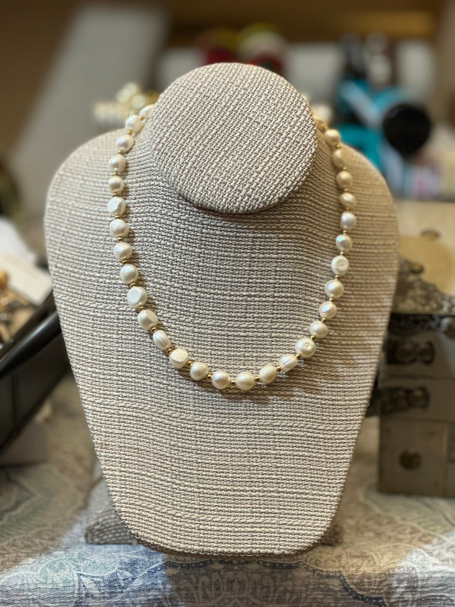 This classic necklace of pearl with gold accents is perfect for every day. It is water resistant and tarnish resistant making it worry-free and perfect for any occasion!