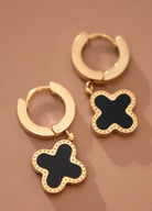 A chic statement with timeless style. These gold clover charm huggie hoop earrings feature a delicate clover pendant with dotted detailing for an elegant, polished look.