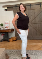 The Casey sweater offers versatile comfort for any summer occasion, day or night. Designed with a flattering v-neck and cap sleeves, it provides gentle arm coverage and a relaxed fit that suits all body shapes. Crafted from lightweight, breathable, and soft fabric, it ensures maximum comfort and skin-friendliness. Ideal for pairing with jeans, shorts, or leggings. For a complete look, try styling it with our Risen white denim.