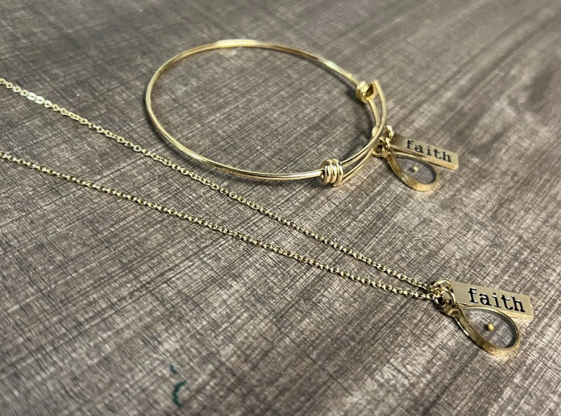 The "Mustard Seed Faith" necklace is available in both gold and silver, so you can choose the one that matches your style best. It's made of stainless steel and measures 18" with a 2" extender, allowing you to adjust it to your desired length. This special necklace comes with two meaningful charms - a mustard seed and a "faith" charm. The "Mustard Seed Faith" bangle is available in both gold and silver, so you can choose the one that matches your style best. It's made of stainless steel, ensuring durability and lasting shine. This beautiful bracelet comes with two meaningful charms - a mustard seed and a "faith" charm. It's a stylish and symbolic way to express your belief and inspire others. Get ready to wear this bangle as a reminder of your faith and positivity!