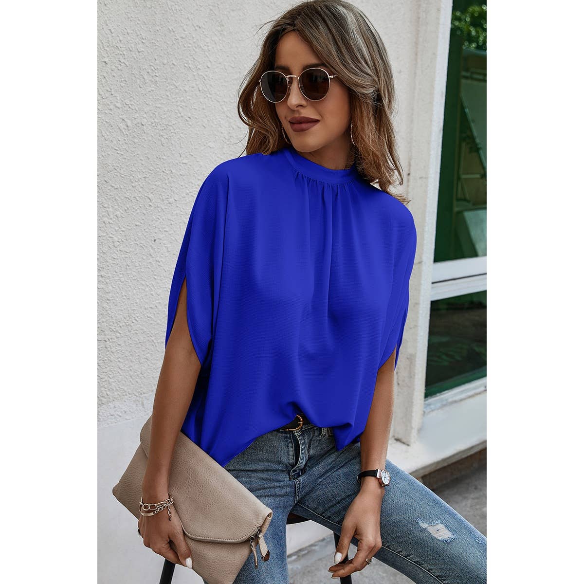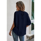 Elevate your casual wardrobe with this effortlessly chic cape short sleeve top. Crafted from 100% polyester, this breathable, lightweight fabric feels soft against your skin while keeping you comfortable all day long. The mock neck and flowing cape sleeves create a flattering, relaxed silhouette perfect for any occasion—from weekend outings to holiday gatherings. The back tie detail adds a touch of sophistication, while the loose fit ensures unrestricted movement. Whether you're heading to school, exploring the outdoors, or enjoying a vacation, this versatile solid top transitions seamlessly from casual to polished. Experience the perfect blend of comfort and style.